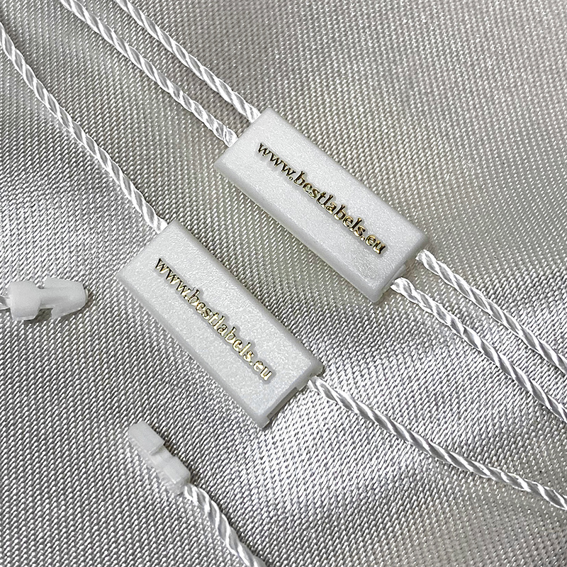 Pasirinktinis plastikinių plombų etikečių ST-M126 mados gaminiams, tokiems kaip drabužiai, avalynė, krepšiai, papuošalai, drabužių aksesuarai ir kt.