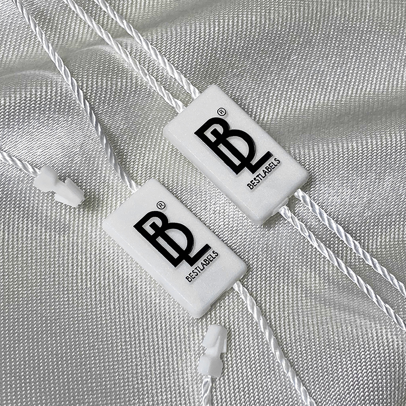 Pasirinktinis plastikinių plombų etikečių ST-M183 mados gaminiams, tokiems kaip drabužiai, avalynė, krepšiai, papuošalai, drabužių aksesuarai ir kt.