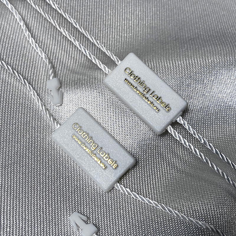 Pasirinktinis plastikinių plombų etikečių ST-M187 mados gaminiams, tokiems kaip drabužiai, avalynė, krepšiai, papuošalai, drabužių aksesuarai ir kt.