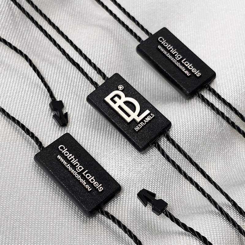Pasirinktinis plastikinių plombų etikečių ST-M191 mados gaminiams, tokiems kaip drabužiai, avalynė, krepšiai, papuošalai, drabužių aksesuarai ir kt.