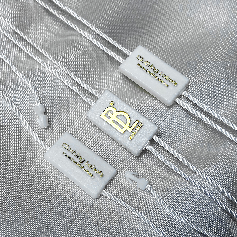 Pasirinktinis plastikinių plombų etikečių ST-M192 mados gaminiams, tokiems kaip drabužiai, avalynė, krepšiai, papuošalai, drabužių aksesuarai ir kt.