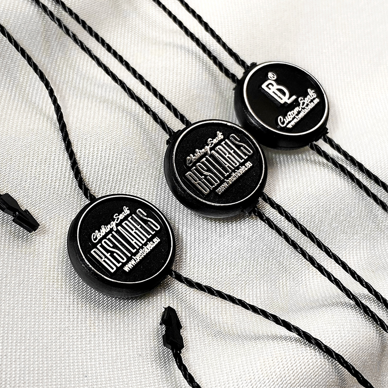 Pasirinktinis plastikinių plombų etikečių ST-M90 mados gaminiams, tokiems kaip drabužiai, avalynė, krepšiai, papuošalai, drabužių aksesuarai ir kt.