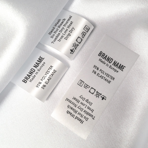 Drabužių skalbimo priežiūros etiketė, pritaikyta skaitmeniniams spausdintiems tekstams ant balto satino, tinka bet kokiam drabužių gaminiui. Šio tipo tekstilės etiketės gaminamos naudojant pažangiausias technologijas skaitmeninės spaudos srityje ant tekstilės atramos. Etiketės spausdinamos ant specialaus satino terminio perdavimo būdu, pasižyminčiu įspūdinga spausdinimo kokybe ir dideliu atsparumu plovimui.