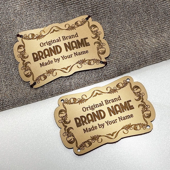Asmeninis etikečių EP-M42 pagamintas iš natūralios odos drabužiams, krepšiams, avalynei ir įvairiems drabužių priedams.