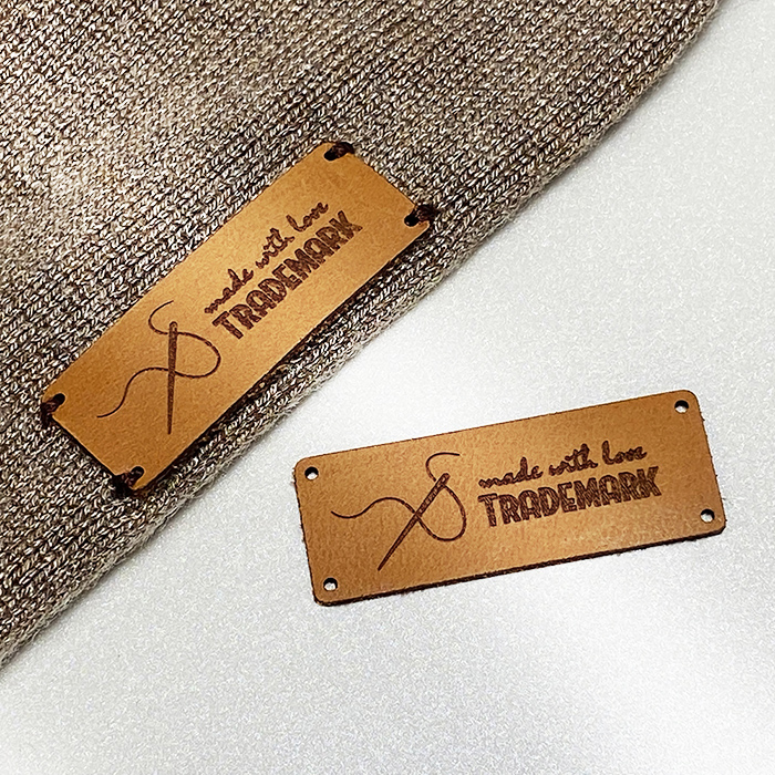 Asmeninis etikečių EP-M63 pagamintas iš natūralios odos drabužiams, krepšiams, avalynei ir įvairiems drabužių priedams.