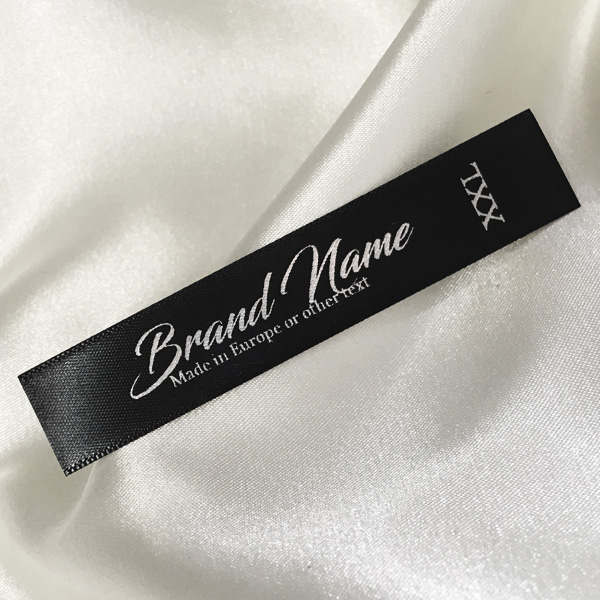 Pasirinktinis etikečių TL-M21 atspausdintas ant satino audinio, tinkamo drabužiams, drabužių aksesuarams ir kitiems tekstilės gaminiams.