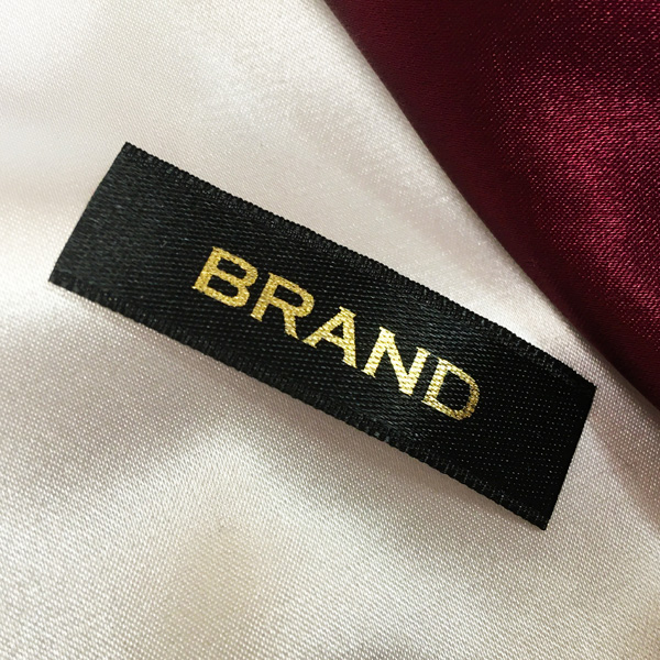 Pasirinktinis etikečių TL-M10 atspausdintas ant satino audinio, tinkamo drabužiams, drabužių aksesuarams ir kitiems tekstilės gaminiams.
